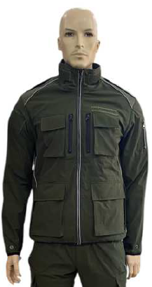 SPANDEX in rip-stop con trattamento idrorepellente. Apertura anteriore con zip e patta.